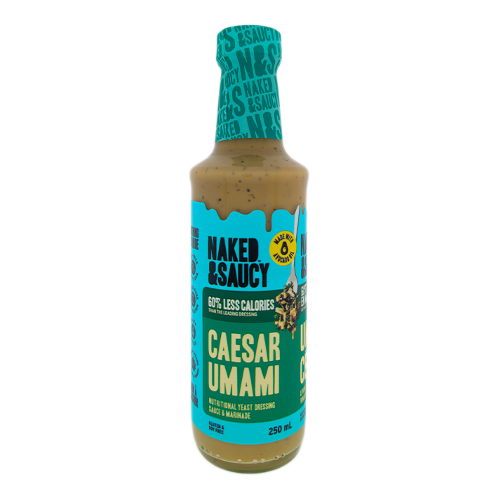 Gone vegan but still craving Caesar dressing? This Naked & Saucy Umami dressing is for you. We’ve skipped the anchovies but are keeping it classy with extra virgin olive oil, organic ingredients and only 50 calories per serving. Get all the goods without breaking a sweat in the kitchen.