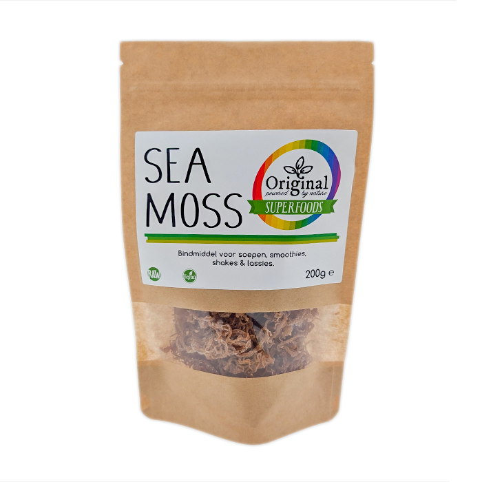 Magic Moss™ is ook wel bekend als Sea Moss & Carrageen (Chondrus Crispus). Het is neutraal van smaak en kleur, en een multifunctioneel verdikkingsmiddel, een bindmiddel in smoothies, soepen, taarten, ijs, enz. Het bevat 15 van de 18 elementen waaruit ons menselijk lichaam bestaat, en het heeft een hoog gehalte in calcium, jodium, zwavel, potassium & vitaminen A, D, E, F & K.