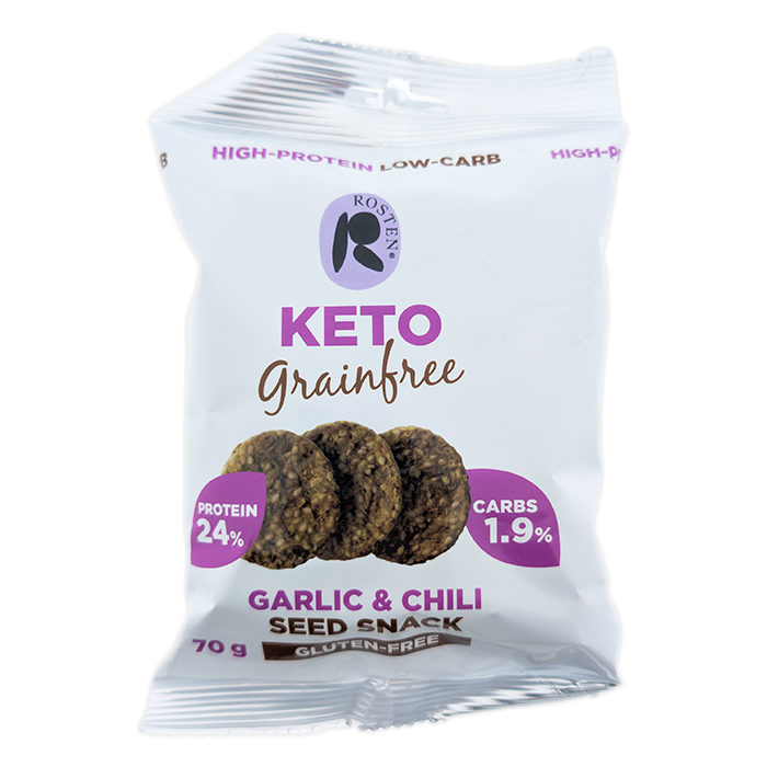 Try Rosten KETO Garlic & Chili Seeds now, a keto-friendly seed snack with garlic and chili. These seed snacks are low in fat and high in protein, making them the perfect snack without unnecessary additives.