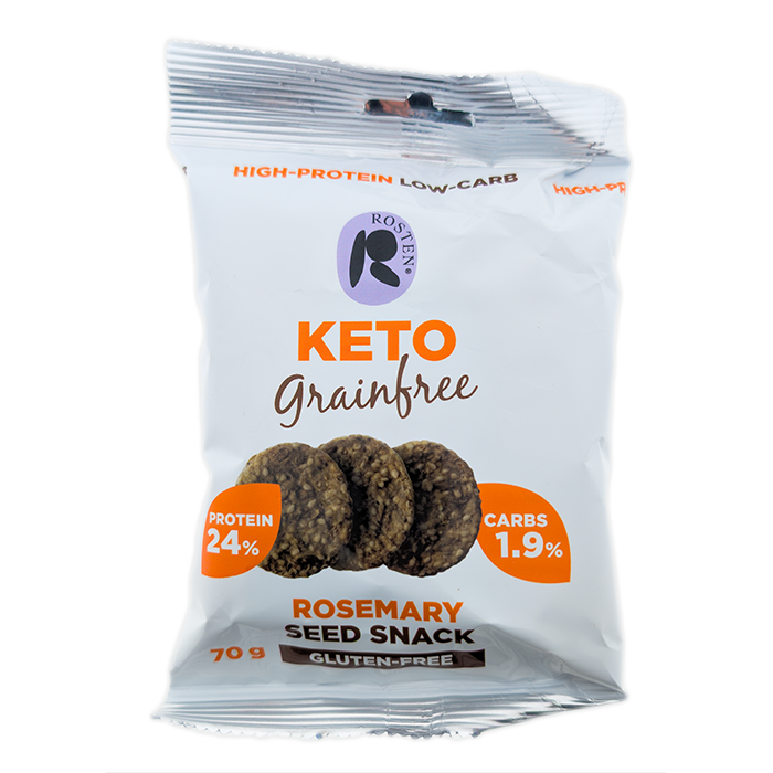 Try Rosten KETO Rosemary Seedsnacks, a keto-friendly seed snack with with rosemary & sea salt. These seed snacks are low in fat and high in protein, making them the perfect snack without unnecessary additives.