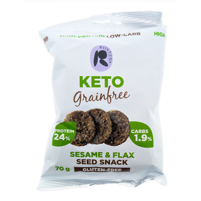 Try Rosten KETO Sesame & Flaxseed Seed Snacks now, a keto-friendly seed snack with sesame and flaxseed. These seed snacks are low in fat and high in protein, making them the perfect snack without unnecessary additives.